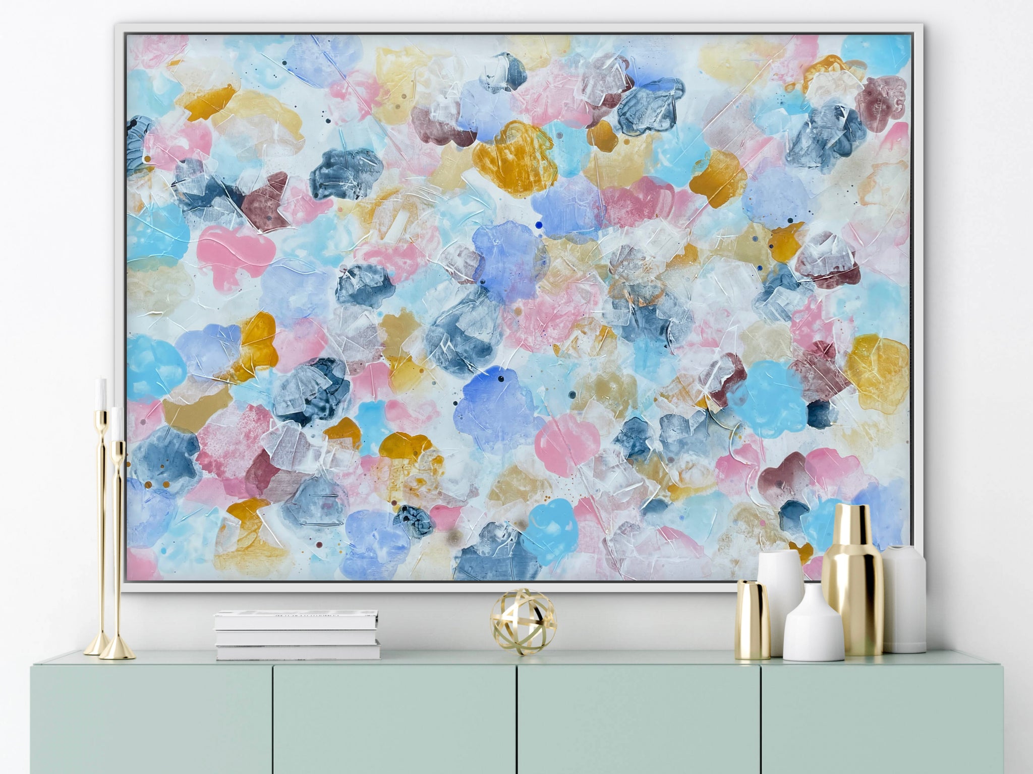 Maleriet er malet med akrylmaling på kvalitets - bomuldslærred fra Bogø Design i Århus. Maleriet er efterfølgende lakeret, så de klare farver bevarer sin glans og ikke falmer over tid.